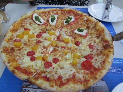 La mia Pasqua in Cina è stata una giornata lunga e intensa. Tralasciando la pulizia della camera, a questo punto non tralascio, e il cambio delle lenzuola, si è sviluppata con un pasto regale a suon di pizza [sono ancora Italiano, da quel che mi dica Tommi] metà margherita e metà ‘Fruit’: ananas, pera e pesca.