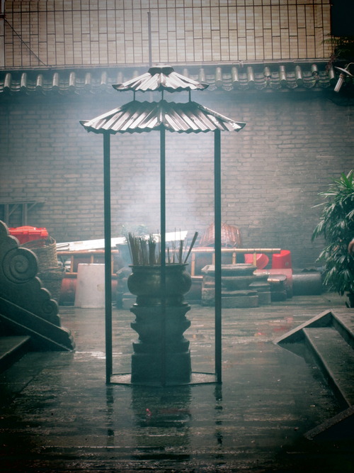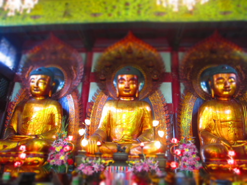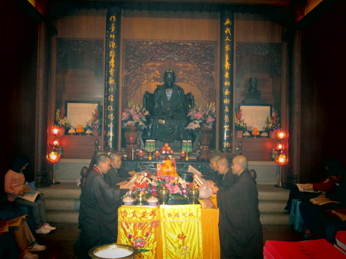 Al pranzo è seguita la visita ad un Tempio Buddista: fantastico. Cantilene, tè caldo, piogerellina e i gesti di saluto dei monaci.